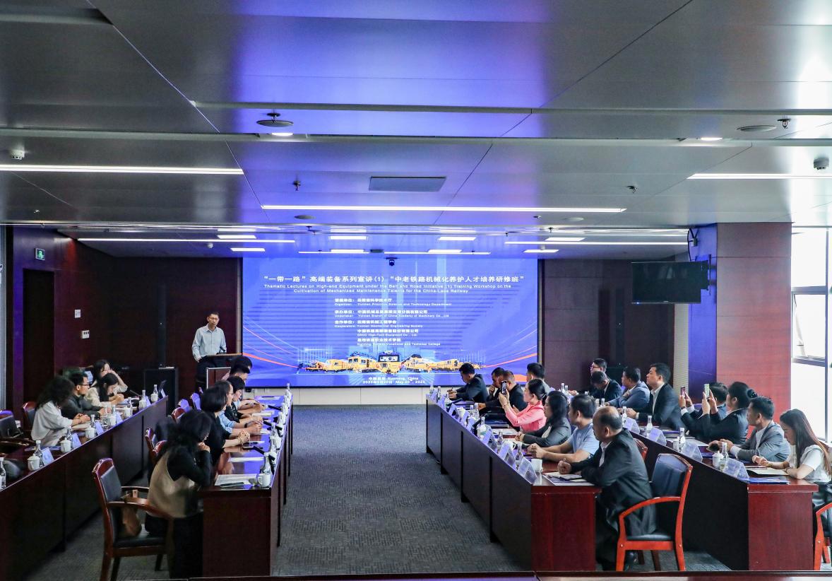 2025年5月20日,"一帶一路"高端裝備系列宣講(1)——中老鐵路機械化養(yǎng)護技術(shù)人才研修班在昆明開班。本次研修班由云南省科技廳支持,中國機械總院云南分院有限公司牽頭承辦,中國鐵建高新裝備股份有限公司、昆明鐵道職業(yè)技術(shù)學(xué)院、云南省機械工程學(xué)會聯(lián)合實施,旨在為老撾培育鐵路養(yǎng)護技術(shù)骨干,深化中老鐵路技術(shù)合作,服務(wù)"一帶一路"建設(shè)。